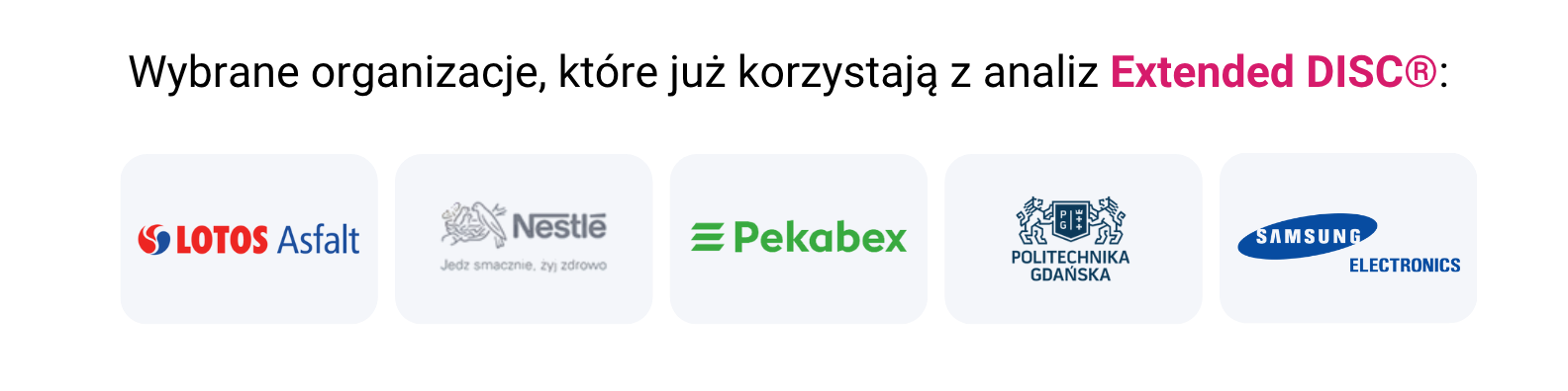 - Analizy indywidualne „Poznaj siebie” opracowane na bazie wyników Extended DISC® dla wszystkich osób objętych badaniem, w tym nastolatków (od 17 roku życia) i młodych dorosłych.