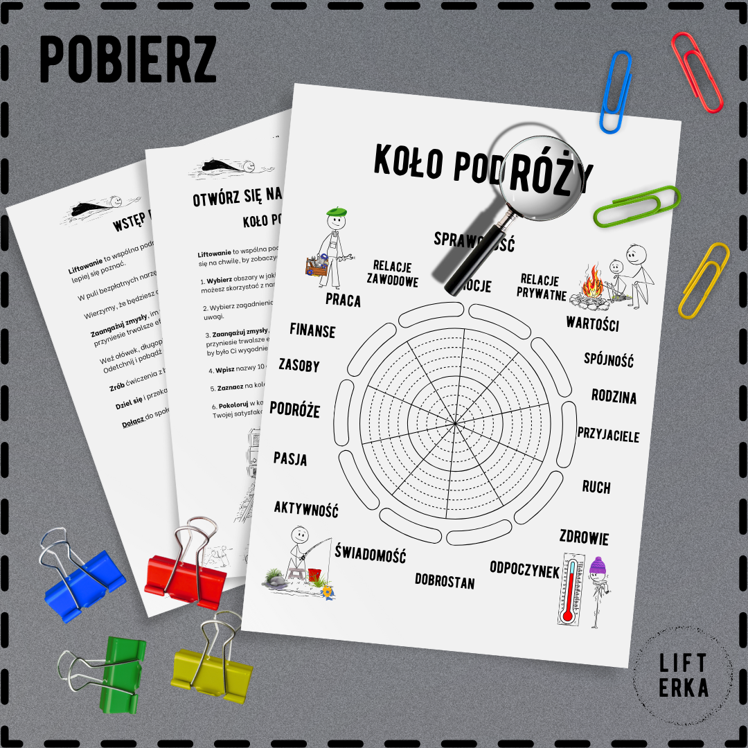 Liftowanie to wspólna podróż, zanim wyruszymy w nią razem warto zatrzymać się na chwilę, by zobaczyć skąd startujemy, dlatego zapraszamy Cię do Koła Podróży. Bezpłatny materiał zawiera 4 strony pdf.