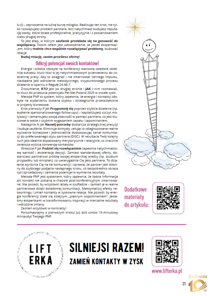 Pet Net Poland 2025 już za nami! Przyszedł czas na działanie i zamianę kontaktów w kontrakty. Sprawdź jak dzięki metodzie PNP – Przypomnij się, Nazwij potrzeby, Podziel się rozwiązaniem nawiążesz trwałe i lojalne partnerstwa.